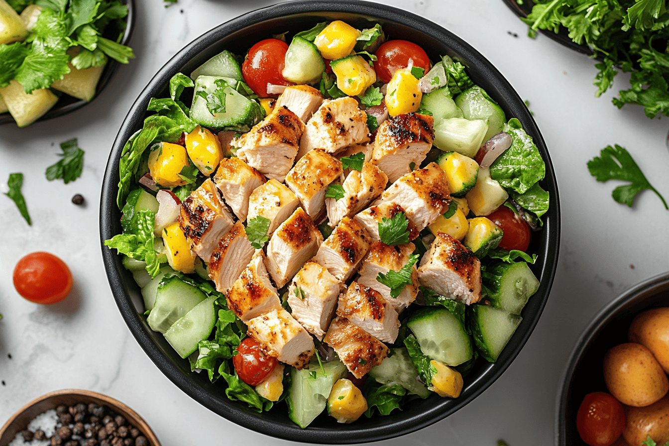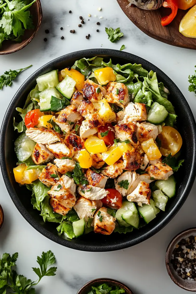 - Ensure the cooked chicken is cooled before dicing and adding to the salad.