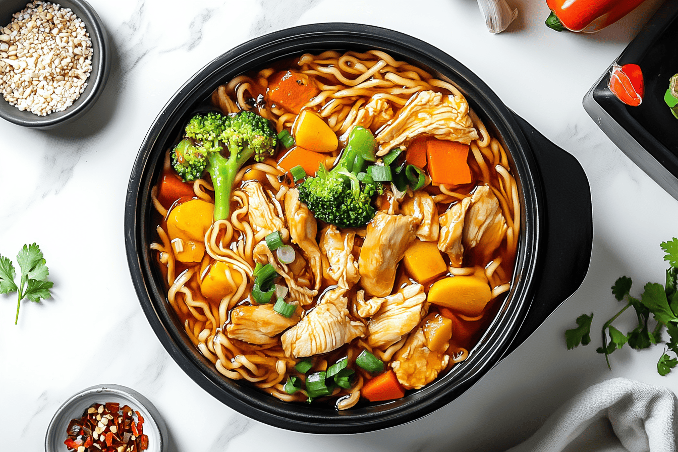 - Onion, Red Bell Pepper, Cabbage, Carrots: These colorful and crunchy vegetables not only add visual appeal but also contribute a variety of textures and flavors to the Chicken Lo Mein, making each bite a delightful experience.
