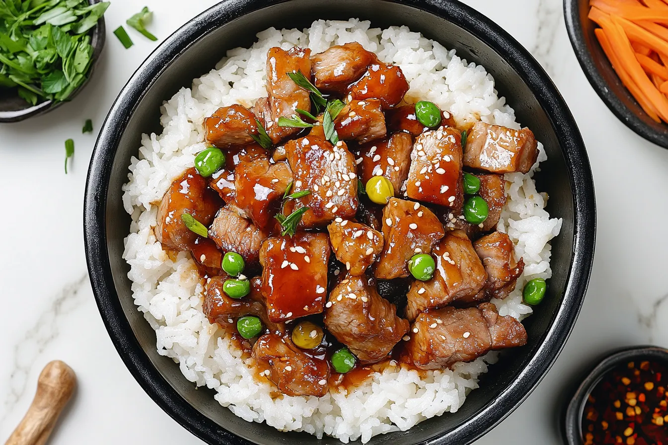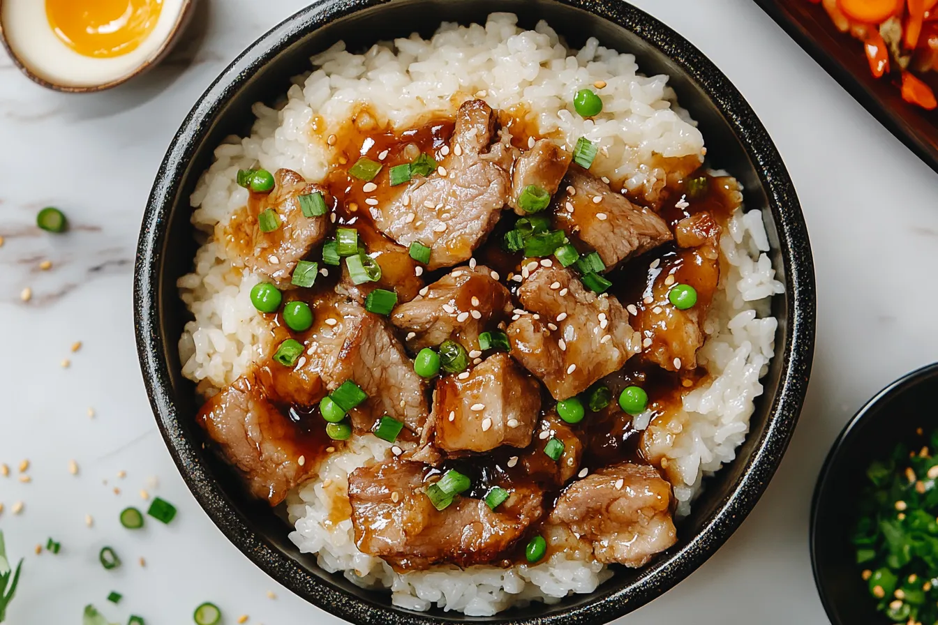 The sweet and savory combination of honey and garlic in this pork rice bowl creates a flavor explosion that will have you coming back for seconds. As the pork cooks in the honey garlic sauce, it transforms into a tender, caramelized piece of deliciousness that’s almost too good to resist. The sauce, rich with a deep umami from the soy sauce and the subtle warmth of garlic, coats each bite of meat perfectly. With just a hint of sweetness from the honey, it’s the kind of balance that makes you want to savor every forkful.