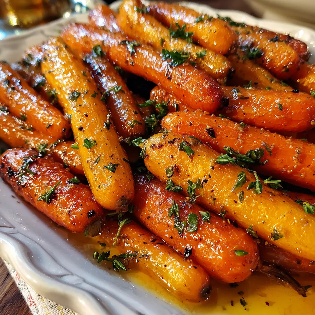 Warm honey-garlic glaze coats tender roasted carrots, edges crisped and sweet, with garlicky undertones and a hint of thyme. Bright parsley adds a fresh pop to each bite.