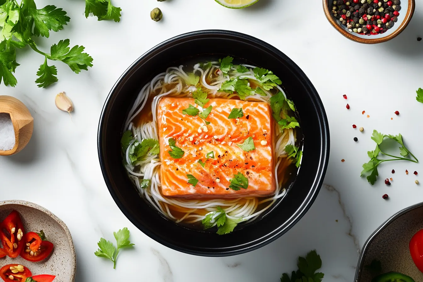 Fresh parsley (chopped): A bright, fresh garnish that cuts through the richness of the salmon. The parsley adds a hint of herbaceous flavor and a pop of color, making the dish visually appealing and deliciously balanced.