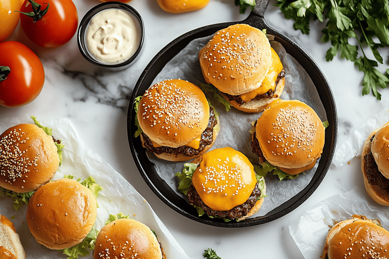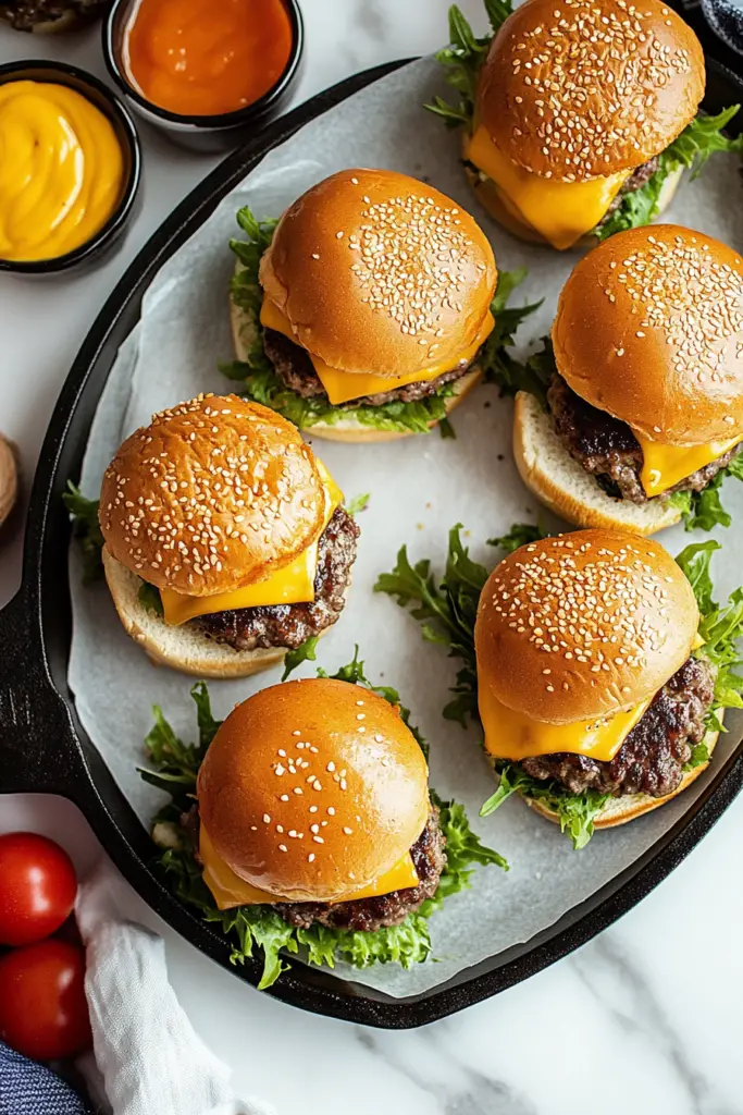 Whether you’re planning a backyard barbecue, a game day feast, or simply craving a comforting meal, these sliders are your ticket to flavor town. The combination of savory beef, melted cheese, fresh toppings, and zesty condiments creates a symphony of flavors in every bite.