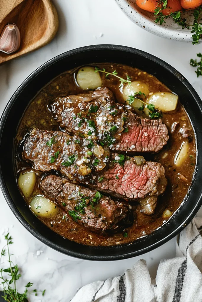6. Taste the pan juices and season with salt and pepper if necessary, adjusting to your preference.