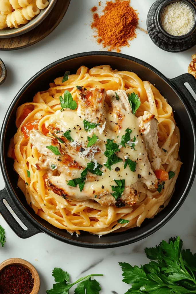 Chopped parsley brightens the entire dish with an herbaceous pop, cutting through the richness of the meat and adding a fresh note.