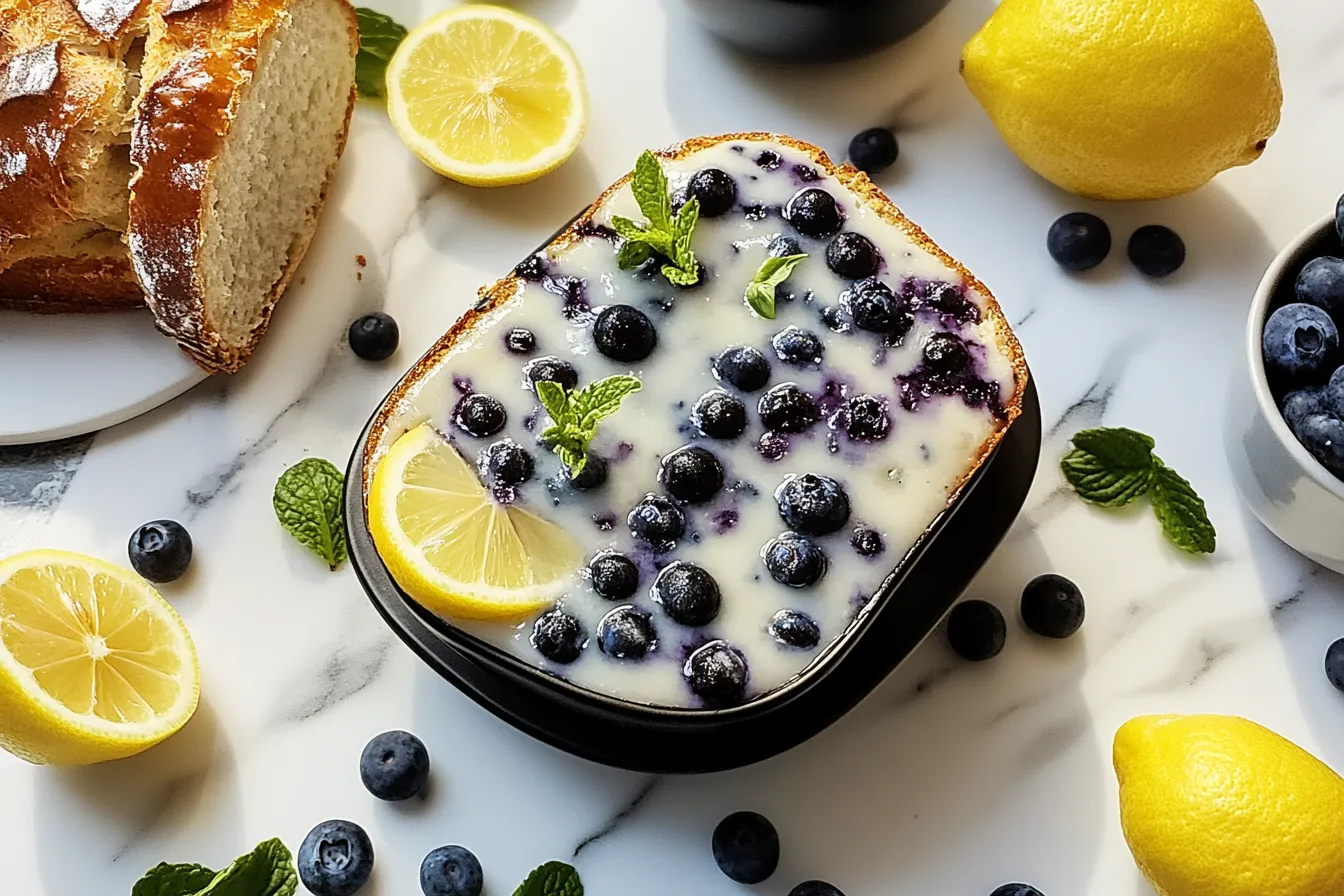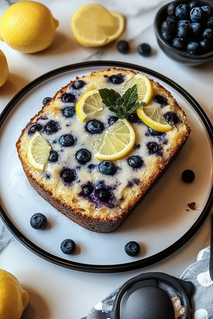 For something creamy and tangy to balance out the sweetness, spread a little cream cheese on top of a warm slice. The smooth, rich texture of the cream cheese combined with the fresh flavors of lemon and blueberry creates an irresistible bite. Perfect for an afternoon snack or light dessert!