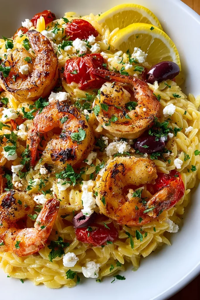 Lemon Feta Orzo Shrimp