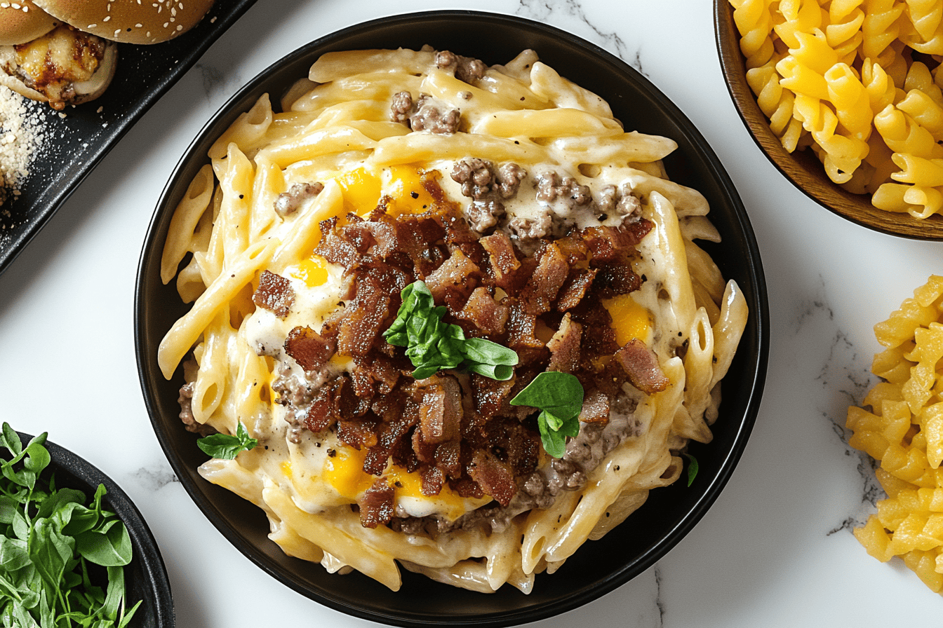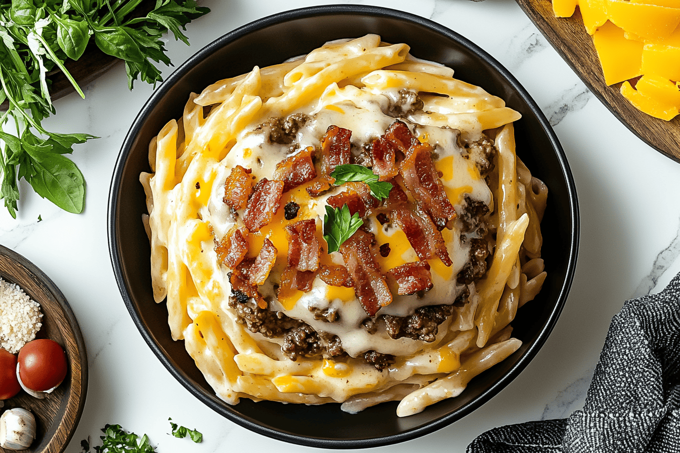 Loaded Bacon Cheeseburger Alfredo Pasta