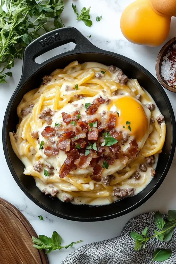 Congratulations, you’ve now learned how to create a masterpiece in the form of Loaded Bacon Cheeseburger Alfredo Pasta! This dish is a symphony of flavors, textures, and aromas that promises to delight your taste buds and warm your soul. From the savory bacon to the rich Alfredo sauce, every bite is a celebration of comfort and indulgence.