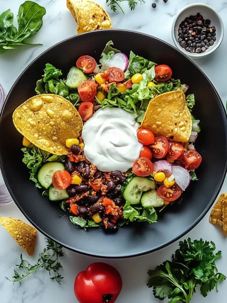 Balance out the richness of the bowl with a refreshing Greek salad on the side. Toss together some crisp lettuce, sliced red onion, Kalamata olives, and a few juicy cherry tomatoes, then drizzle with olive oil and a splash of red wine vinegar. It’s the perfect light, tangy contrast that’ll make each bite feel even more satisfying.