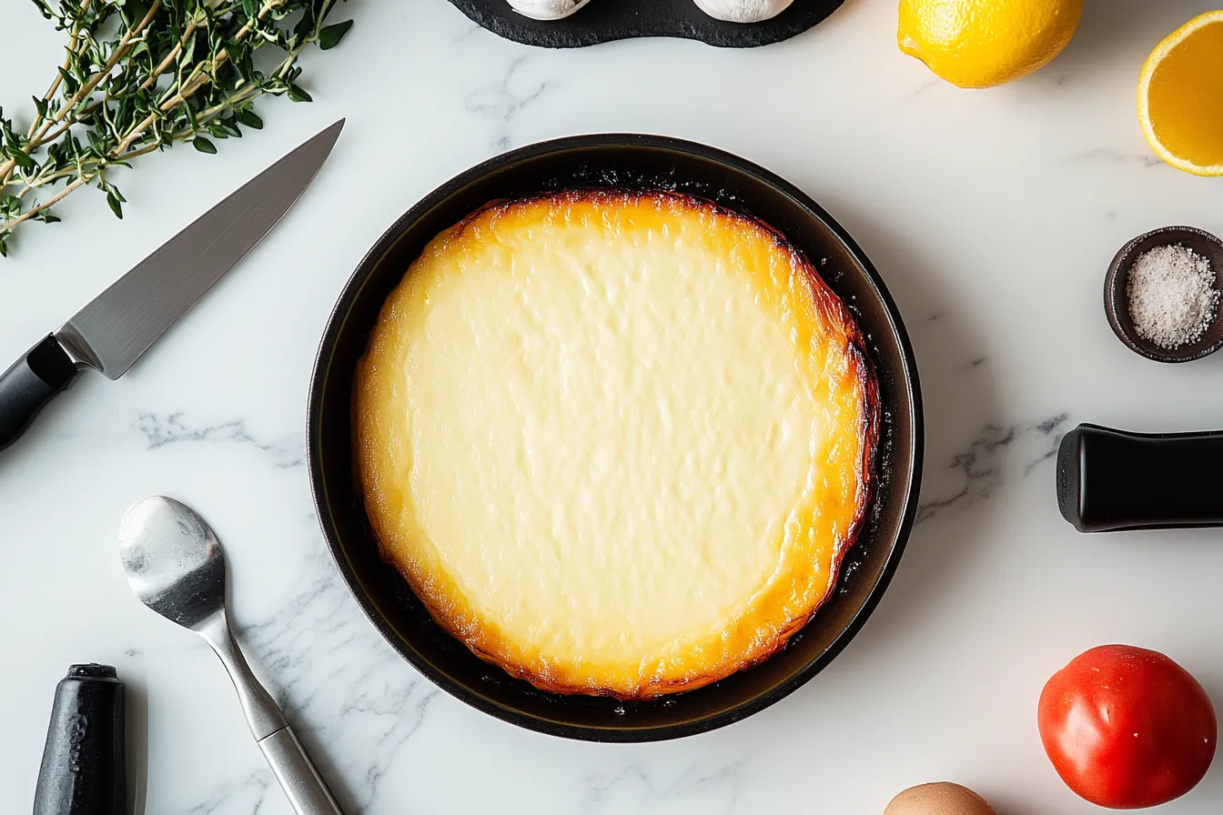 - STEP 8: Once baked, remove the Melopita from the oven and let it cool in the pan for about 10 minutes before transferring it to a wire rack to cool completely. This helps the cheesecake set and makes it easier to slice later.