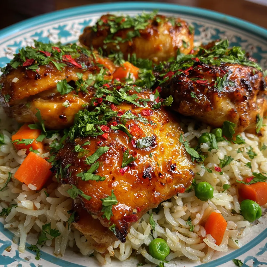 Fluffy, saffron-tinted rice complements the zesty tacos with a comforting, savory foundation.