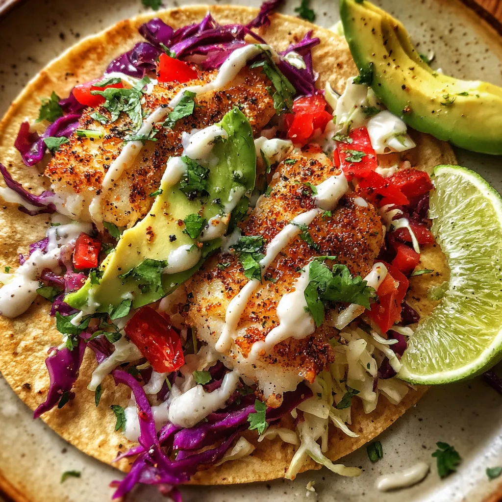 Corn tortillas loaded with tender, paprika-kissed fish, crunchy cabbage, and silky avocado slices. A tangy lime crema brings zingy brightness to every bite, balancing spice and cream in these vibrant tacos.