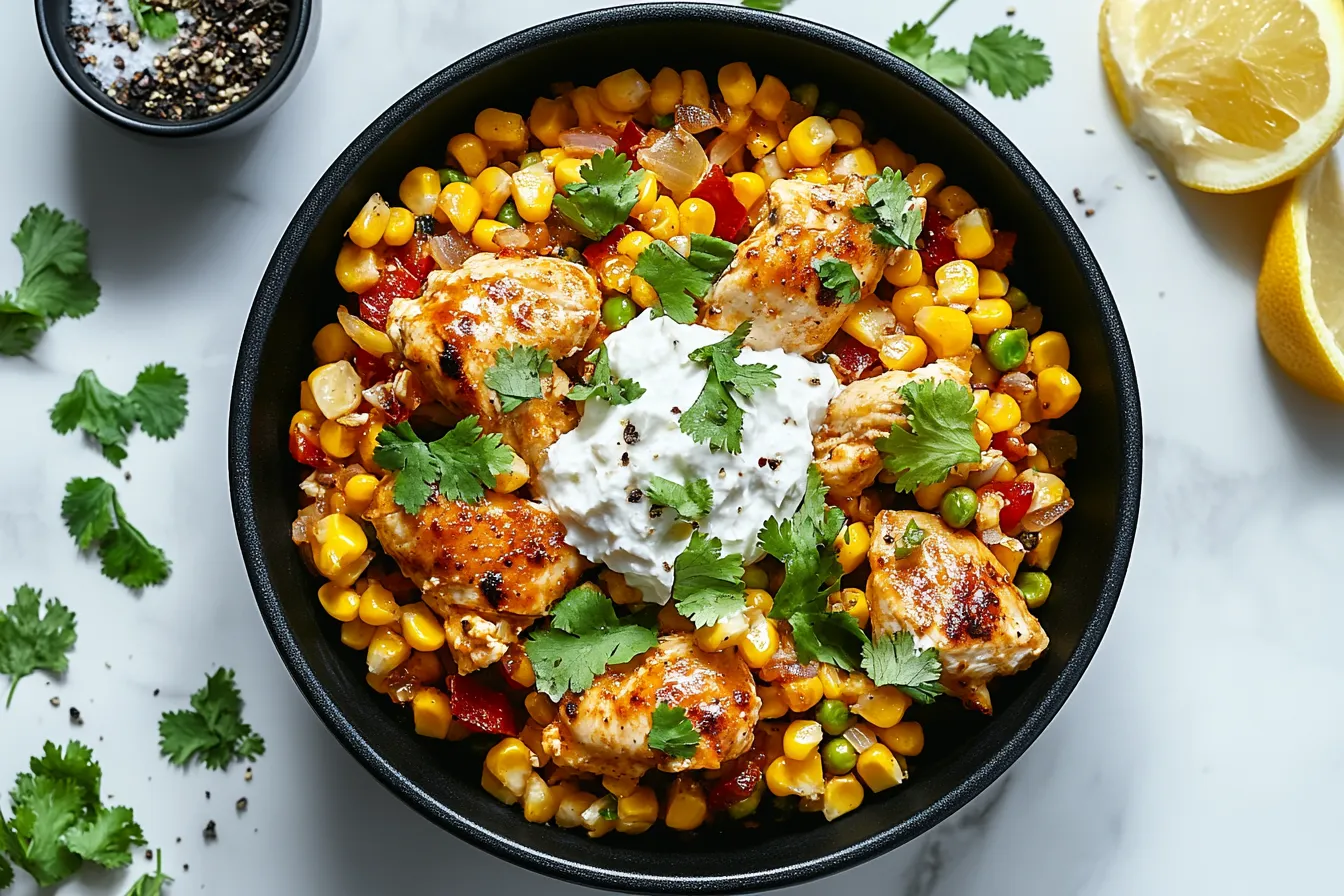 Serve immediately and enjoy your Mexican Street Corn Chicken Bowl!