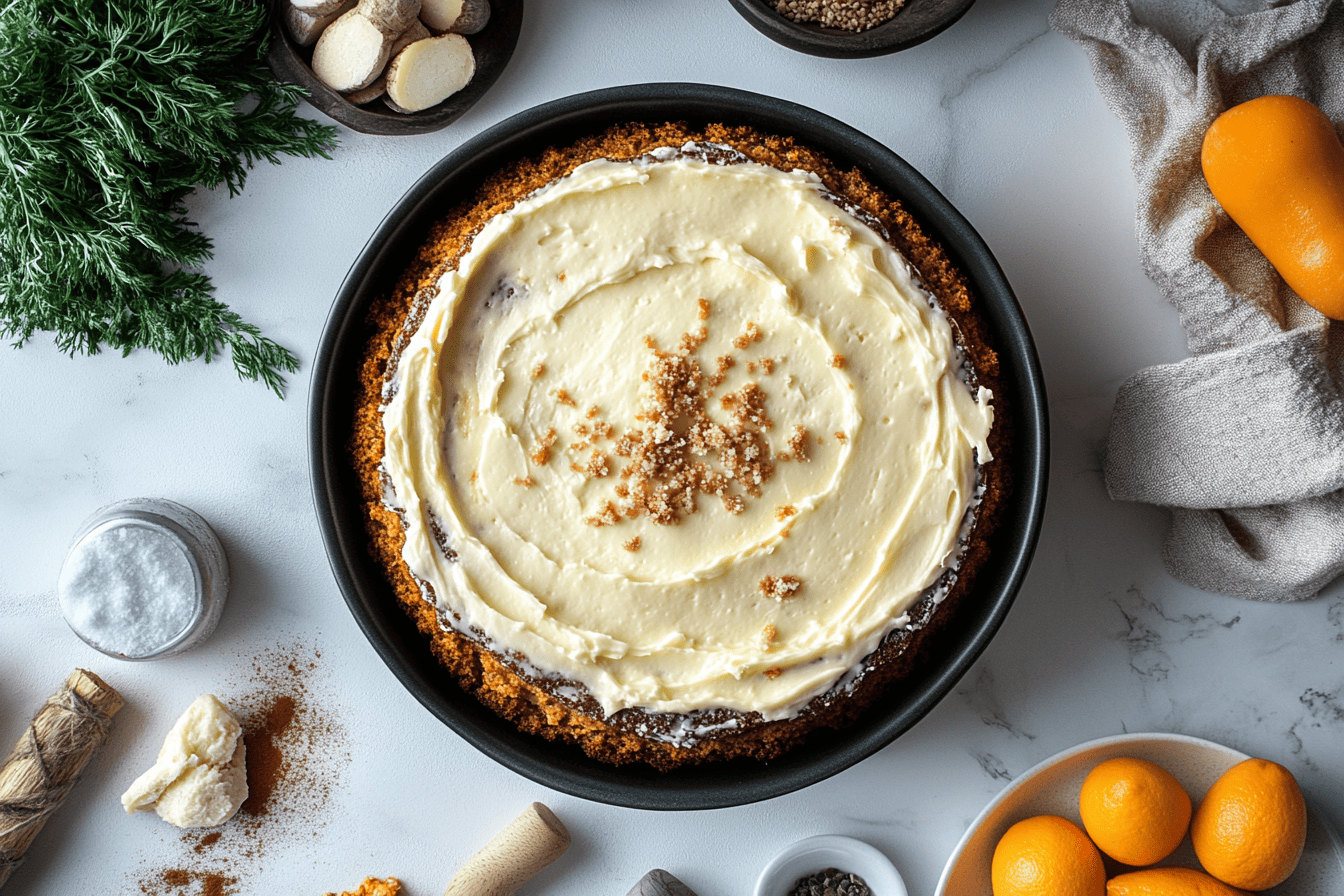 Key Ingredients in Moist Carrot Cake with Cream Cheese Frosting
