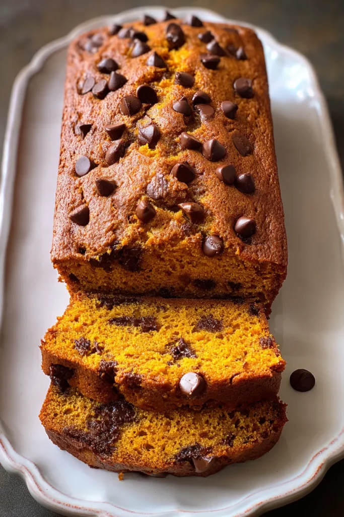 This delightful loaf combines the cozy flavors of pumpkin and aromatic spices with sweet chocolate chips, creating a bakery-worthy treat perfect for any occasion.