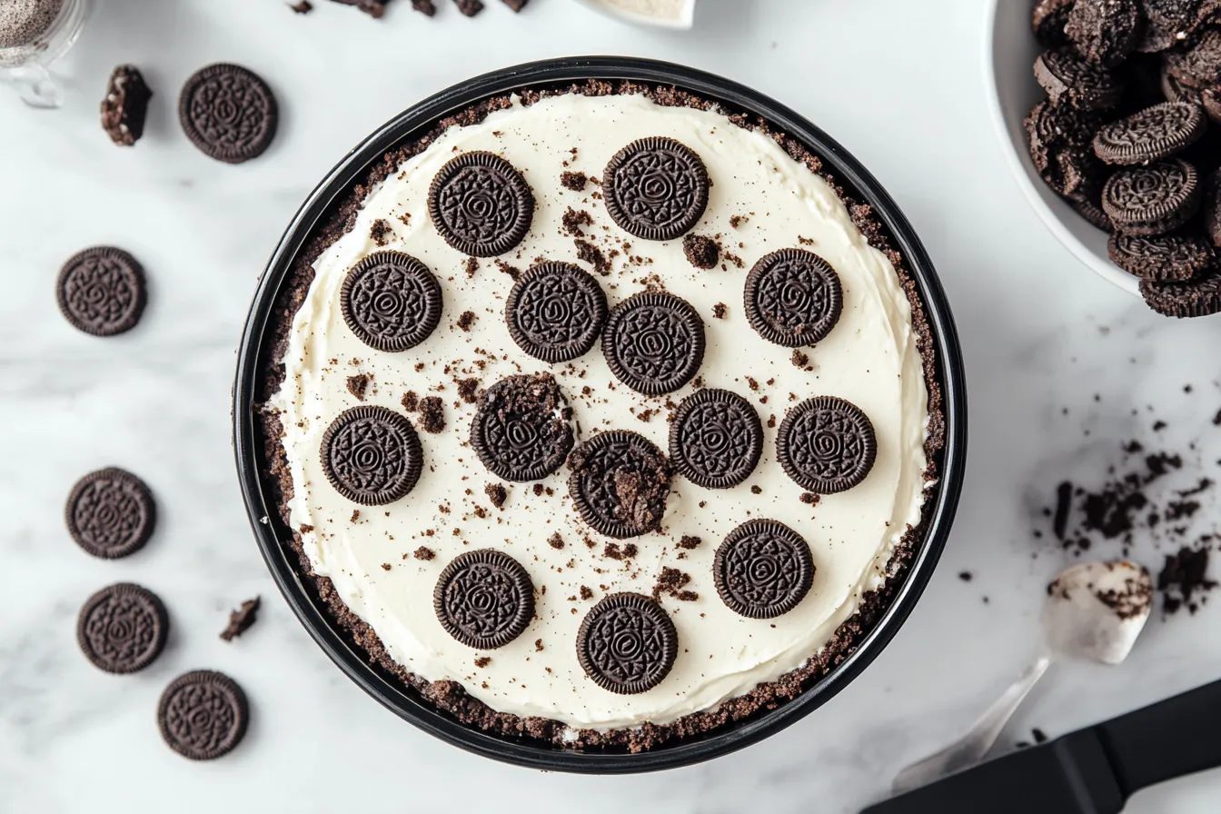 – Crushed Oreo cookies: These form the base of the cheesecake, creating a perfectly crunchy, slightly sweet, and cocoa-rich crust that complements the smooth filling beautifully.