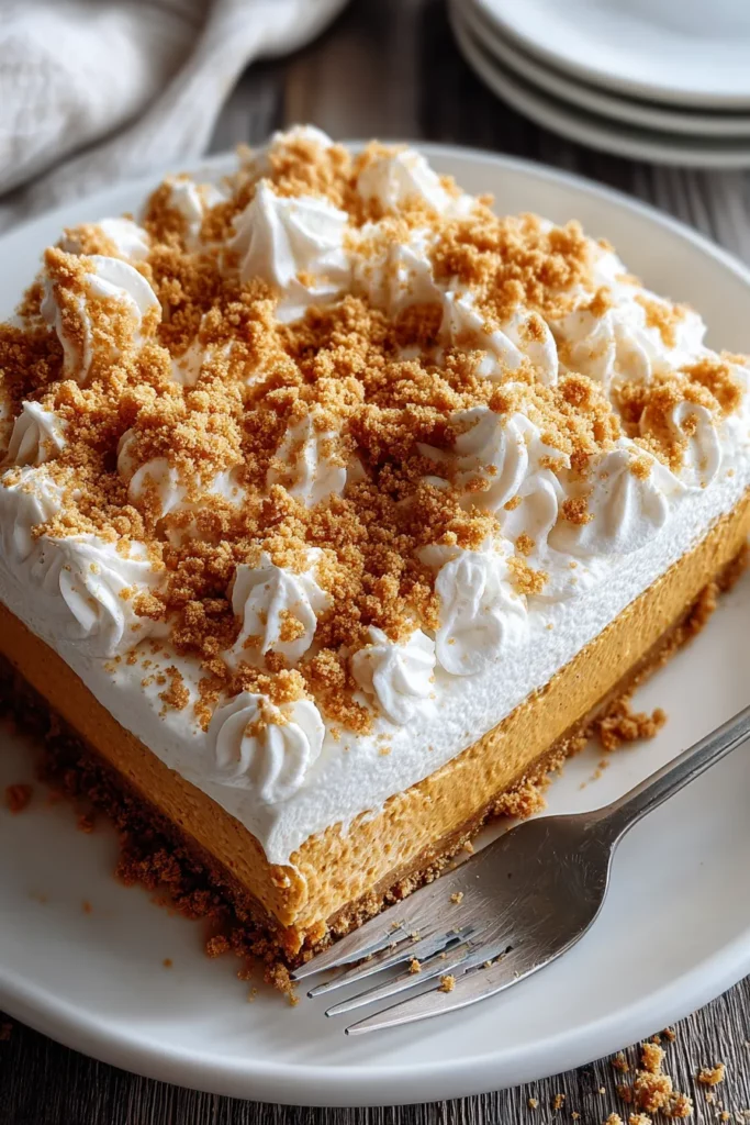 I can’t wait to hear how your version turns out! If you give this No Bake Pumpkin Spice Delight a whirl, drop a comment with your tweaks, successes, or any questions you encounter along the way. Whether you’re curious about experimenting with additional spices like nutmeg or ginger, want advice on achieving an extra-firm crust, or simply want to share a photo of your masterpiece, I’m here to chat. Your feedback not only helps me refine future recipes but also inspires fellow home cooks to dive into seasonal baking (without ever turning on the oven!). Happy whisking, folding, and indulging—may every bite bring a little taste of fall to your table.