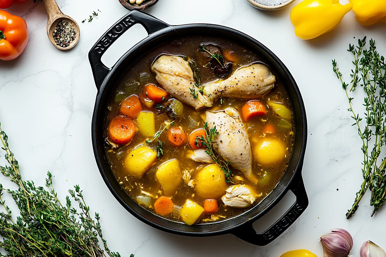 As the soup simmers, the house fills with the most comforting aroma, the kind that wraps around you like a warm hug. The rich scent of thyme blends perfectly with the earthy goodness of root vegetables, and the chicken gives off a satisfying fragrance as it cooks down into the broth. This isn’t just a meal—it’s an experience, one that brings back memories of Sunday family gatherings and cozy afternoons spent with loved ones. Each spoonful is a reminder of the care and love that goes into creating a dish that’s as nourishing for the soul as it is for the body.