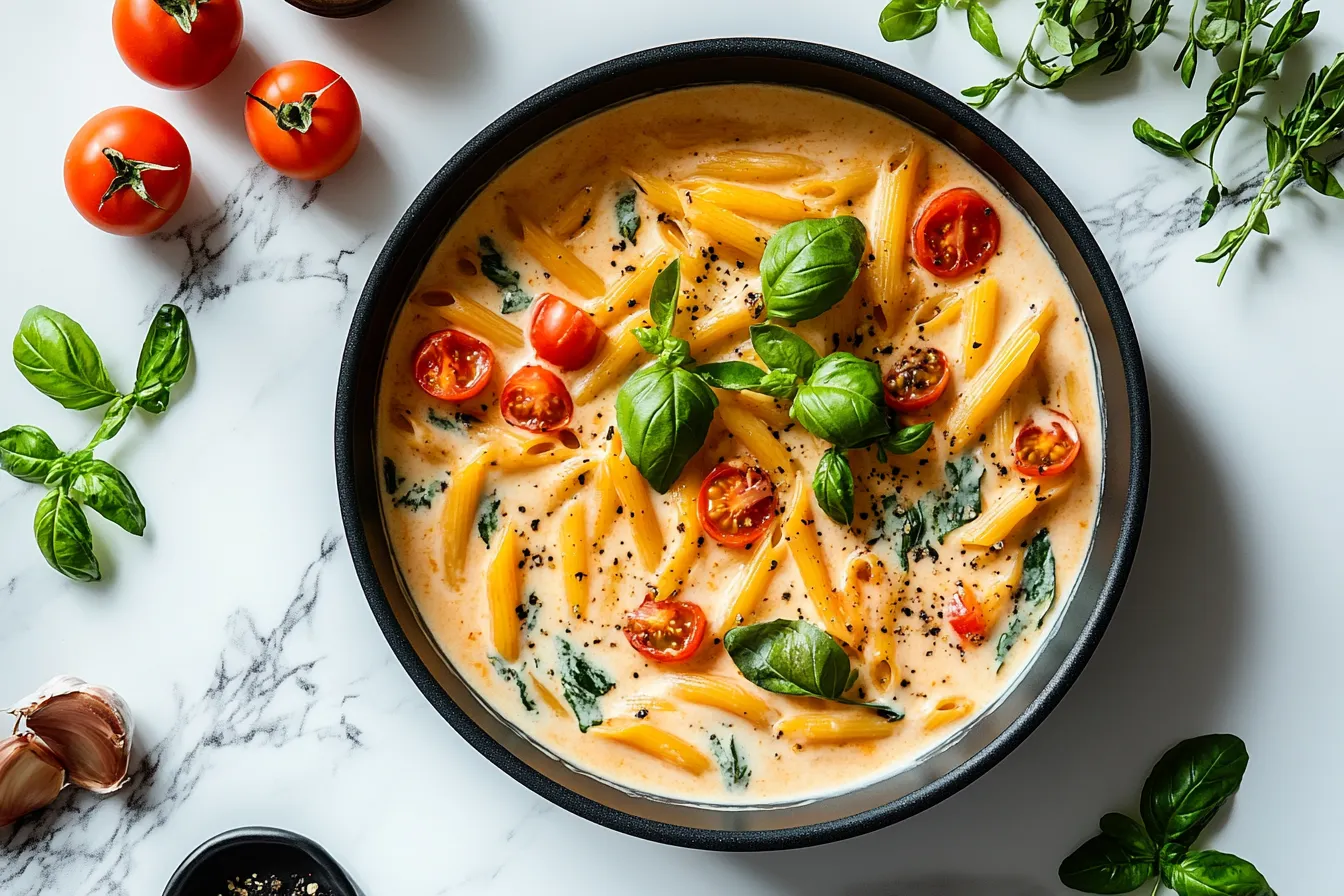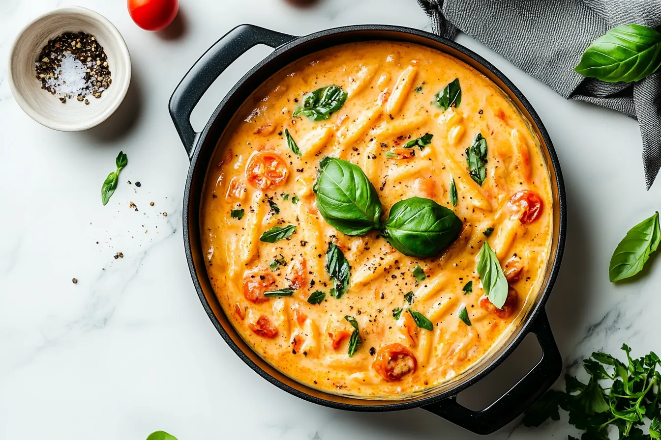 A rich, creamy tomato sauce envelops tender pasta in this one-pan wonder. The perfect balance of tangy tomatoes, velvety cream, and a touch of garlic creates a comforting, irresistible dish that’s quick, satisfying, and bursting with flavor!