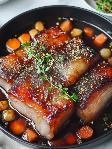 Sprinkle chopped fresh parsley or basil on top just before serving. The bright green flecks lend a fresh aroma and a pop of color that complements the rich, red-tinged broth.