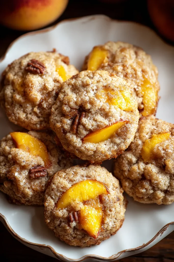 I’ve always been drawn to recipes that bring back memories—like picking peaches on a warm afternoon or sneaking spoonfuls of dough when no one’s looking. Peach Cobbler Cookies do exactly that by blending two classic desserts into one irresistible treat. The dough rises just enough to cradle those plump peach pieces, while the pecans (if you choose to include them) add a gentle crunch that contrasts perfectly with the gooey white chocolate pockets. Whether you’re a beginner baker or a seasoned pro, these cookies are incredibly forgiving. So grab your mixing bowls, and let’s talk through every delicious detail of turning ripe, juicy peaches into a batch of cookies that taste like summer on a plate.