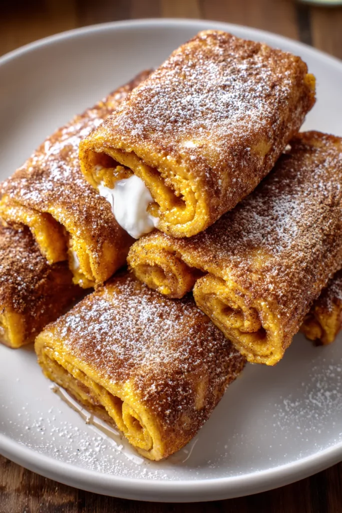 These Pumpkin French Toast Roll-Ups bring together the creamy goodness of pumpkin puree and warming spices, all wrapped up in golden, crispy bread. A cozy treat!