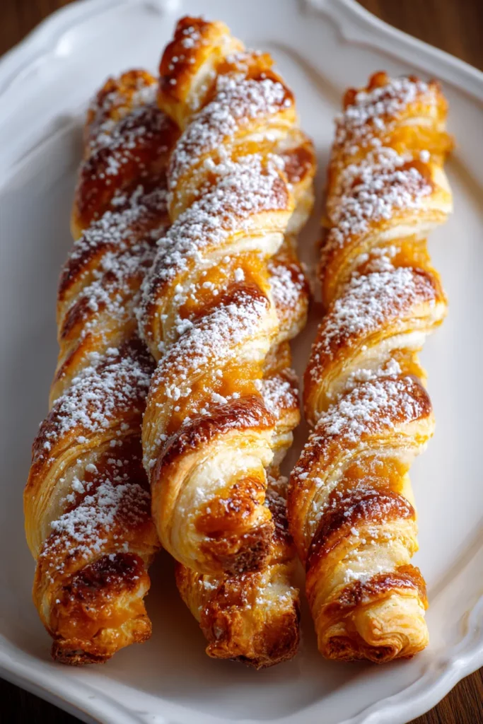 Serve the twists straight from the oven, lightly dusted with powdered sugar. The heat will cause the sugar to melt slightly, creating a delicate glaze that clings to each flaky ridge.