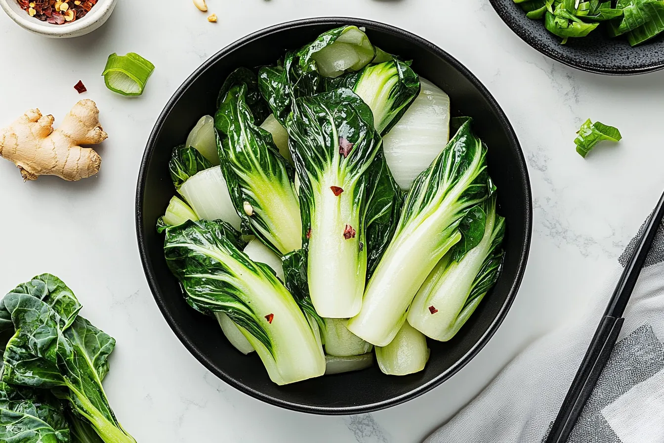 The vibrant green of bok choy quickly turns tender in the pan, as the garlic and ginger work their magic. The moment they hit the heat, the kitchen fills with that unmistakable, comforting fragrance. The garlic becomes slightly crispy at the edges, offering a delicious bite that pairs perfectly with the earthy bok choy. And then there’s the ginger—its fresh, zesty warmth dances alongside the garlic, balancing the dish with just the right hint of spice. As the bok choy wilts down, its leaves still maintain a slight crunch, creating this beautiful contrast in texture that’s so satisfying with every bite. It’s one of those dishes that feels both light and hearty at the same time. Each bite is a burst of flavor, but the beauty of this recipe is how effortlessly it all comes together. With just a few ingredients, you’ve created something that feels so much more sophisticated than the time it takes to prepare it. That’s the magic of bok choy—quick to cook but full of rich flavors, making it the perfect side for almost any meal.