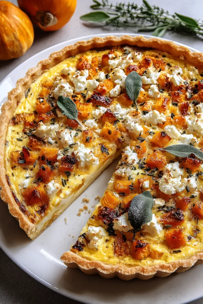This roasted pumpkin quiche is packed with flavor, featuring creamy feta, fresh sage, and the warmth of nutmeg. Perfect for brunch or a cozy dinner!