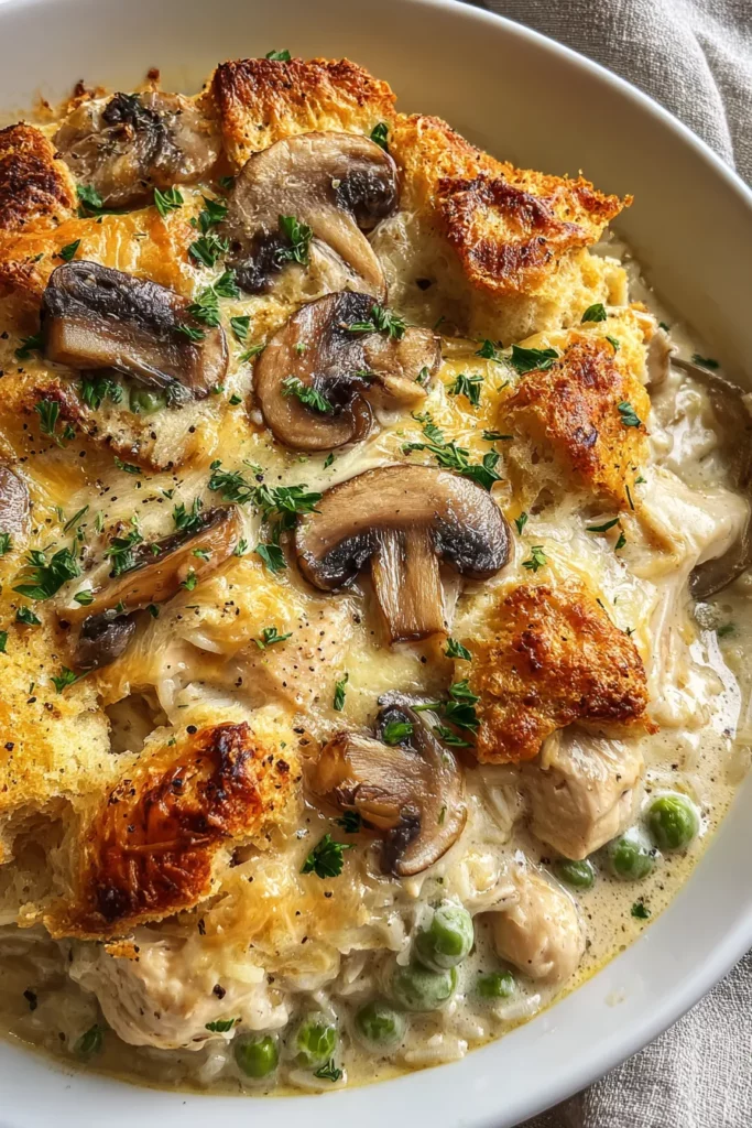 This Savory Baked Chicken Casserole is the kind of dish that transforms an ordinary evening into something extraordinary. Tender cubes of chicken meld with creamy mushroom soup and lush sour cream, then marry with cheddar cheese to form a bubbly, golden crown that beckons everyone to the table. Perfectly balanced with hints of garlic and onion powders, and brightened by pops of sweet peas and earthy mushrooms, this casserole is the ultimate weeknight dinner solution. Whether you’re juggling a busy work schedule or craving comfort food after a long day, this beginner-friendly recipe delivers delicious results in about 55 minutes (20 minutes prep, 30 minutes baking, and 5 minutes resting).