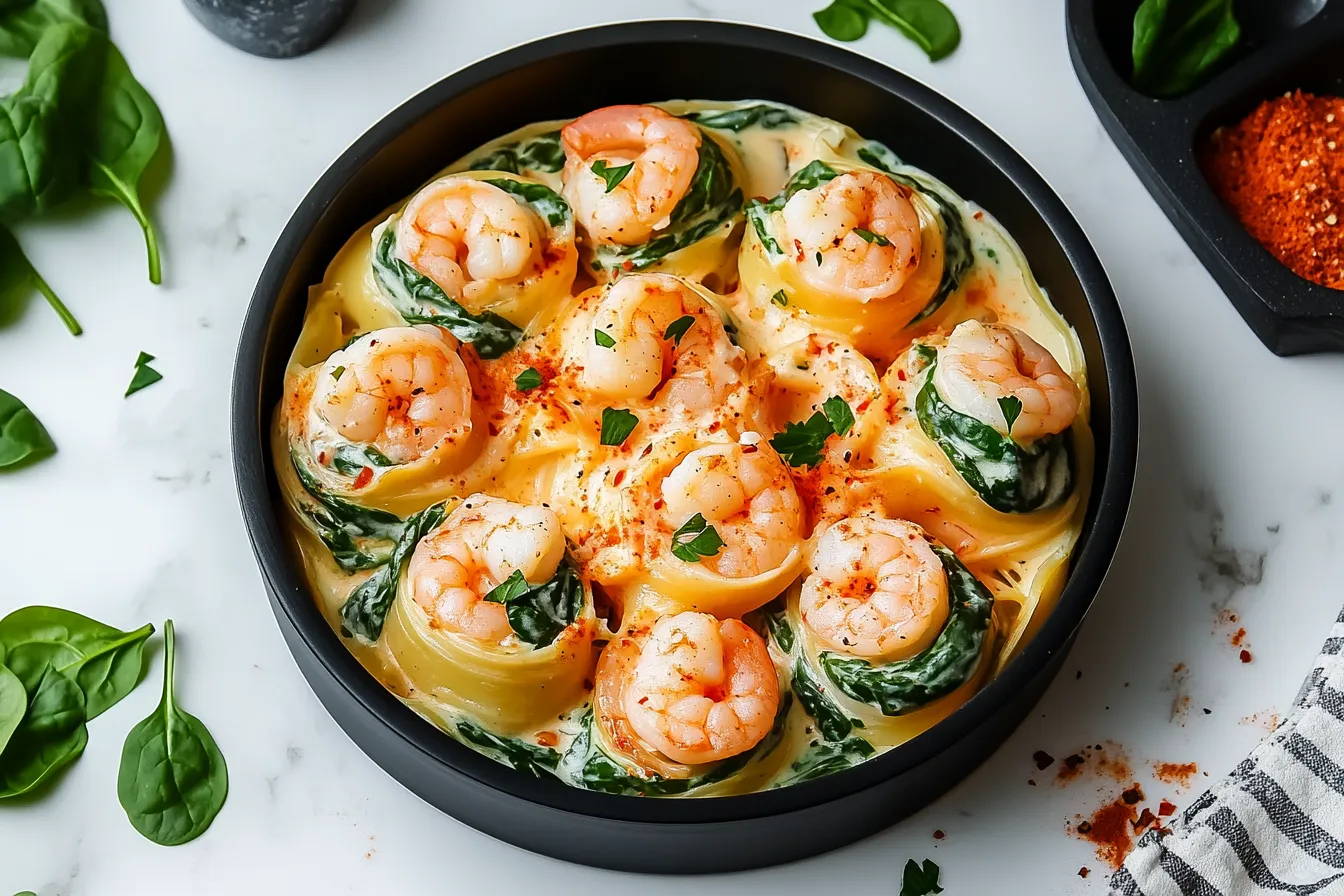 Tender pasta rolls filled with juicy shrimp and fresh spinach, smothered in a rich, creamy roasted red pepper sauce. Each bite bursts with savory goodness, offering the perfect balance of flavors that will leave you craving more!