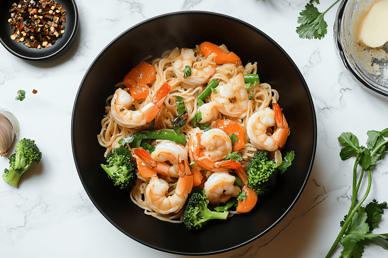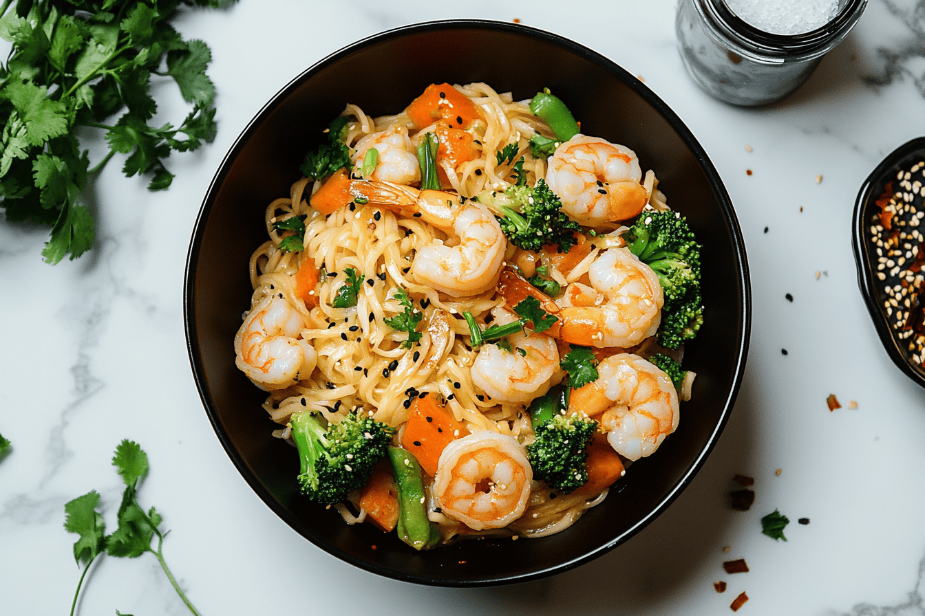 Savor the tantalizing flavors of succulent shrimp, crisp veggies, and slurp-worthy noodles all wok-tossed to perfection in a savory, slightly sweet stir-fry sauce. Easy, delicious, and oh-so-satisfying!