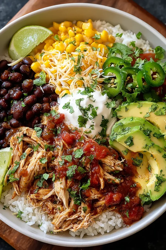 Thank you for joining me on this flavorful journey into Slow Cooker Chicken Burrito Bowls! This recipe combines bold Mexican-inspired spices with tender shredded chicken, hearty beans, and gooey cheese, all cooked to perfection in your trusty slow cooker. Whether you’re feeding a hungry family or meal-prepping for the week, these bowls always deliver on taste, convenience, and comfort. From the ease of layering ingredients to the excitement of customizing your toppings, every step is designed to make you feel like a kitchen pro—even if you’re just starting out. With about 15 minutes of prep, a few hands-off hours of cooking, and endless topping possibilities, this dish is a beginner-friendly delight that never disappoints.