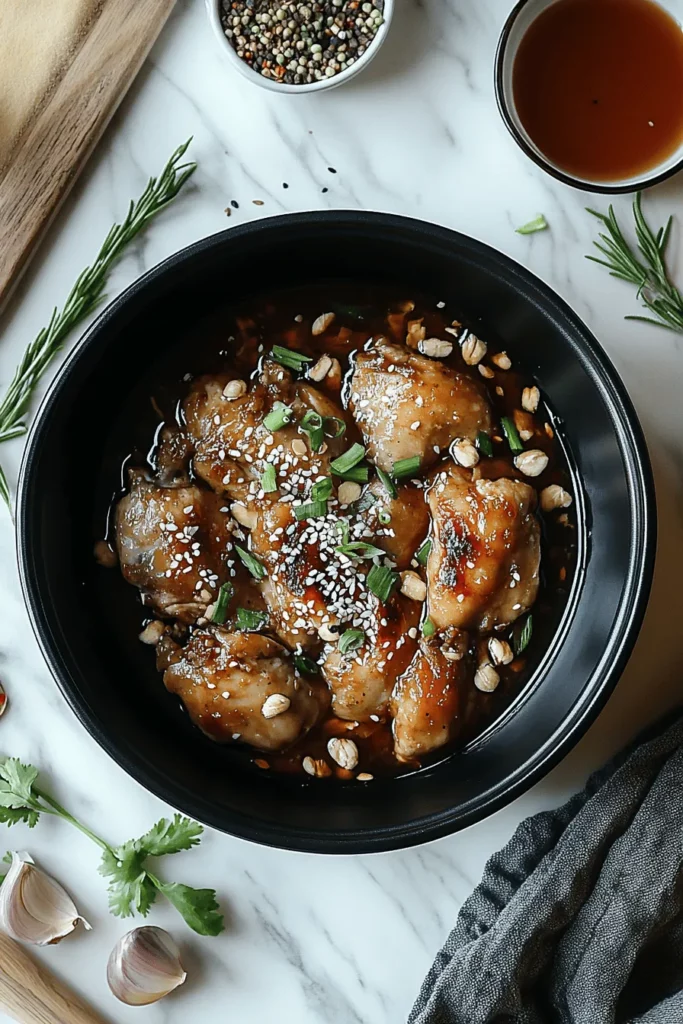 10. Serve the chicken garnished with chopped green onions and sesame seeds for a final pop of color and crunch.