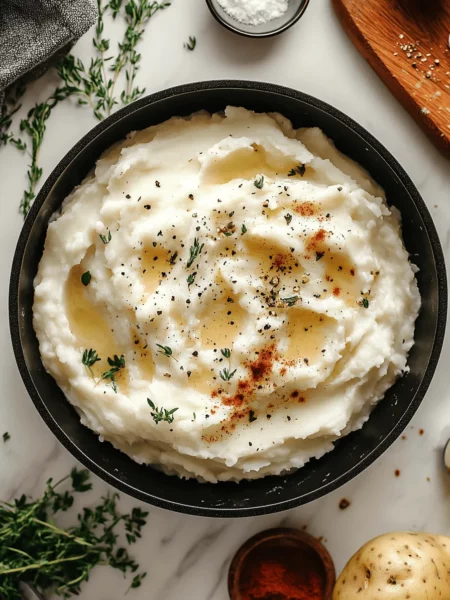 Spoon a generous portion of creamy mashed potatoes onto each plate, then crown them with Salisbury steak meatballs and ladle over extra gravy. The buttery, fluffy potatoes soak up every savory drop.