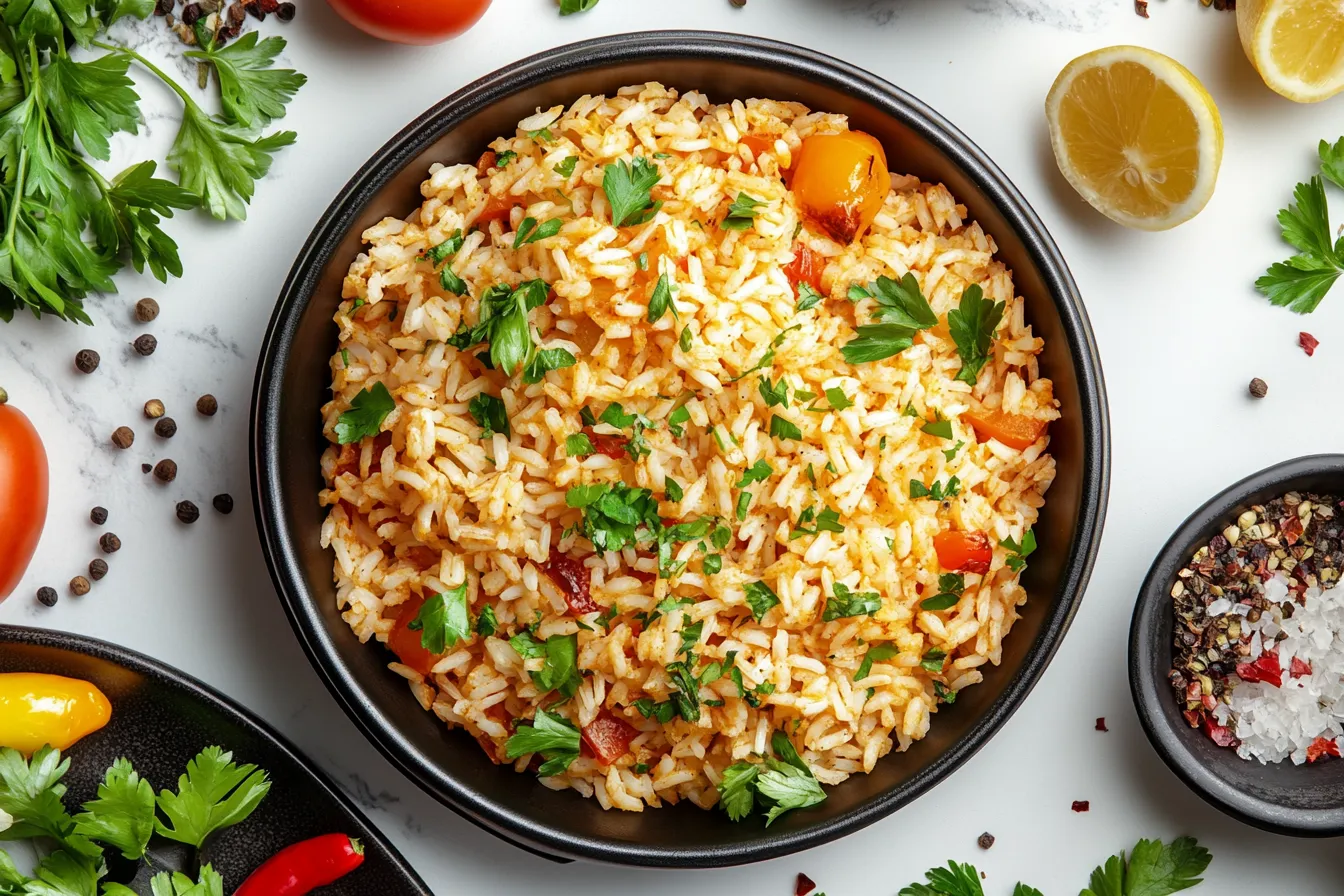 Spanish Rice is a vibrant, savory side dish with tender grains of rice cooked in a flavorful blend of tomatoes, onions, garlic, and a touch of cumin. Each bite bursts with bold, aromatic spices, making it the perfect complement to any meal!