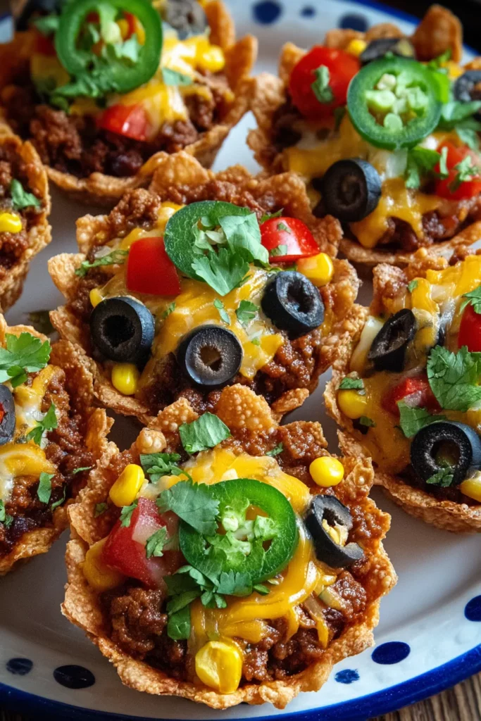 Bringing these Spicy Mexican Taco Cupcakes to your kitchen means welcoming a creative twist on a beloved classic. With their golden, crunchy wonton cups, layers of seasoned beef and beans, vibrant corn and salsa, and that irresistible cheese blanket on top, they’re destined to become a new household favorite. The recipe’s versatility—easy swaps for ground turkey or chicken, adjustments to the heat level, and endless serving combinations—means you can tailor it to your crowd, taste buds, or pantry odds and ends. Best of all, these taco cupcakes travel well from oven to party table, making them an ideal finger-food option for game days, potlucks, or any festive gathering.