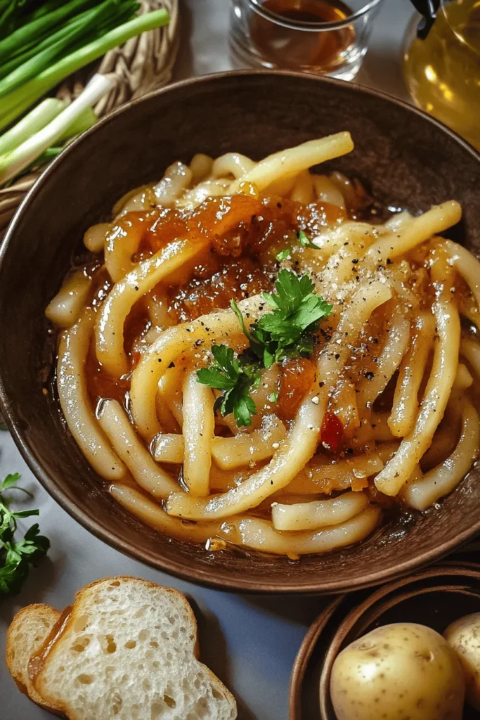 When you’re craving a bowl of noodles that packs a punch while still feeling like a warm hug for your taste buds, Spicy Potato Noodles is the answer. This dish brings together silky rice noodles (or your favorite noodle choice) and tender potato cubes in a vibrant, chili-kissed sauce that wakes up every corner of your palate. The soft potatoes create an unexpected creaminess, while the noodles provide that satisfying slurp factor we all secretly crave. It’s the kind of comfort food that somehow feels exciting, thanks to layers of savory soy sauce, a hint of tangy rice vinegar, and a dash of fiery red chili flakes to make your tongue tingle. Every bite is a delightful surprise—soft potato bits nestled among chewy noodles, crisp mixed veggies, and fresh cilantro leaves dancing on top.