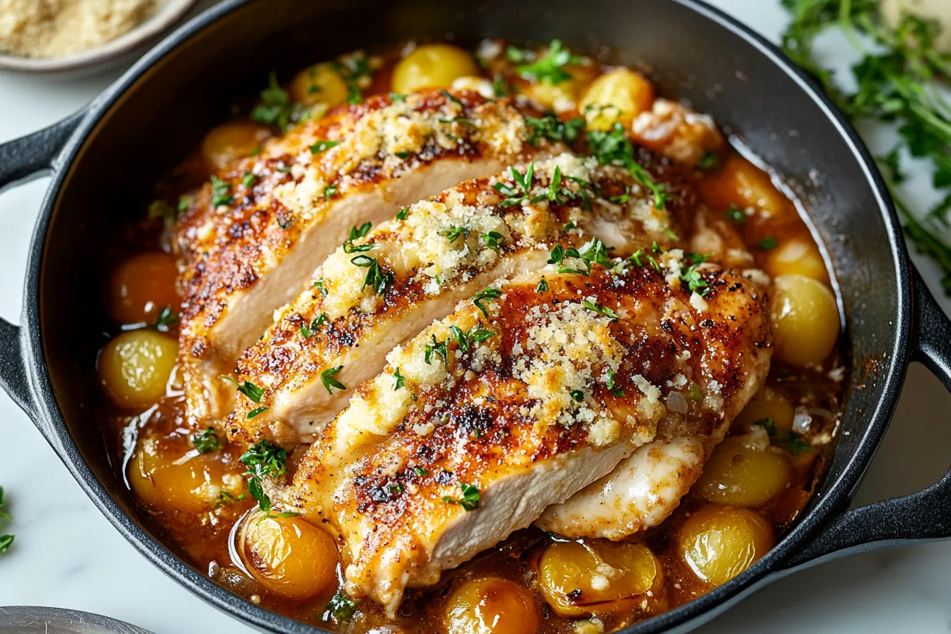 Juicy, tender chicken breast is perfectly breaded and baked to golden crispiness, then smothered in rich, melted Parmesan cheese. Paired with a savory garlic cream sauce, it’s a mouthwatering take on classic comfort food you won’t want to miss!