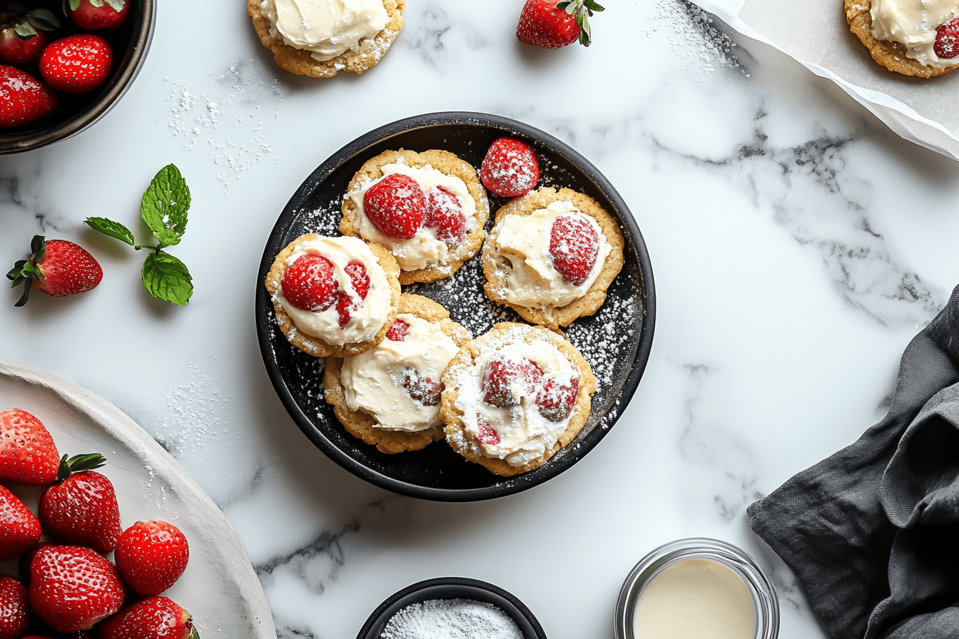 Chopped Strawberries: These fresh and juicy berries bring a burst of sweetness and a bright, fruity flavor to the cookies, complementing the rich cheesecake filling.