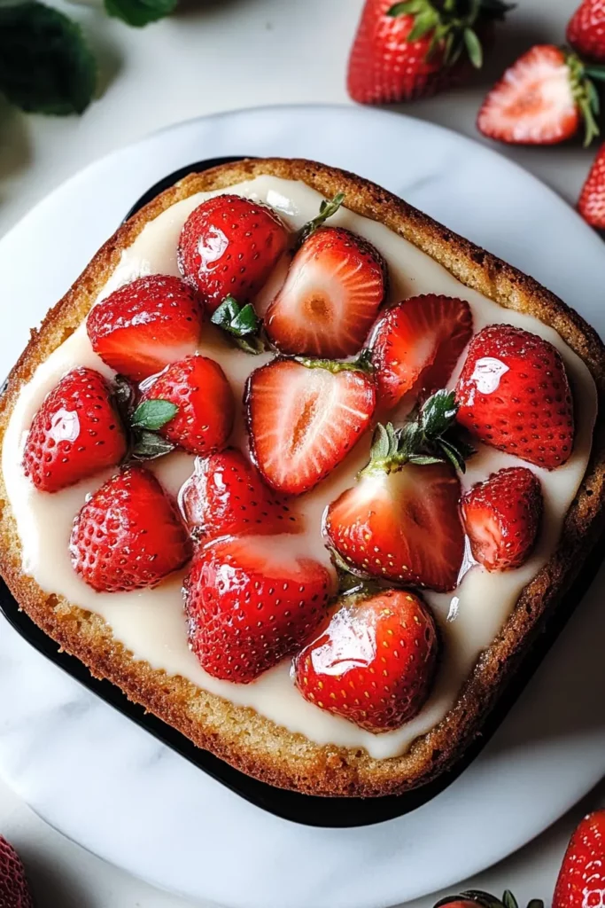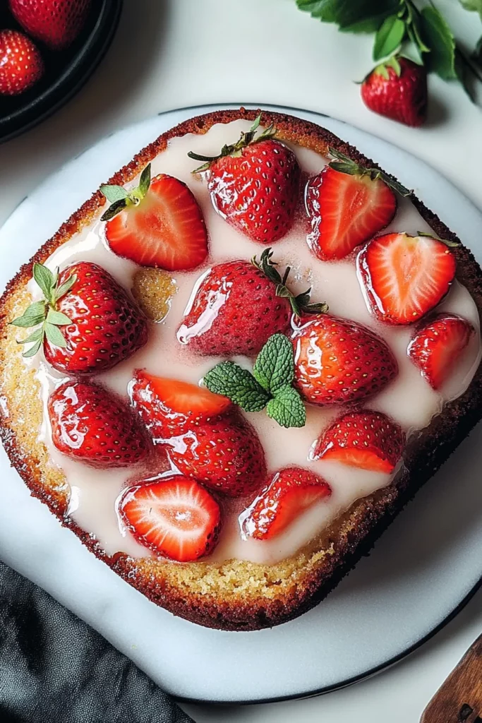 Want to take it up a notch? Drizzle a simple strawberry glaze made from powdered sugar and strawberry puree over the top. This adds a burst of color and extra strawberry flavor, making your cake feel even more festive and special.