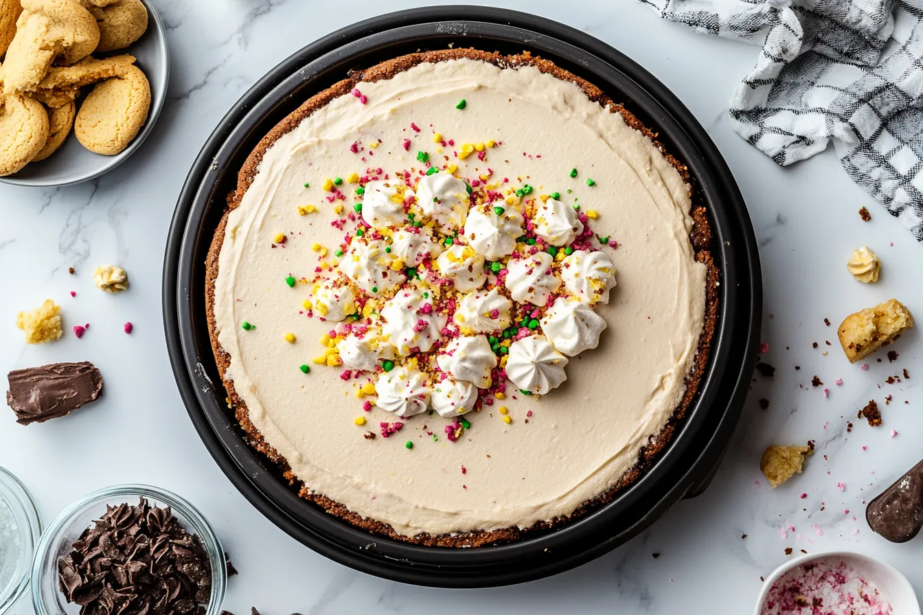 The creamy filling of this sugar cookie cheesecake is like a soft, velvety dream. It’s perfectly sweet, but not overwhelming, with a hint of vanilla that lingers just enough to make you want another bite. As you sink your spoon into the smooth layer, you’ll notice how the flavor of the sugar cookie crust complements the richness of the cheesecake. The buttery, slightly crisp texture of the crust contrasts beautifully with the airy filling, creating that perfect balance of sweet and savory. And let’s talk about the way it holds together – not too dense, but not too light either, just enough to make each slice feel like a satisfying treat.