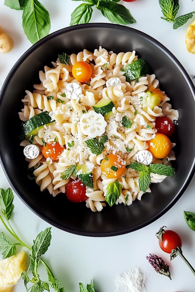 This vibrant pasta salad makes a perfect side dish to a savory main. Try serving it with grilled chicken or shrimp for a complete meal that’s light yet satisfying.