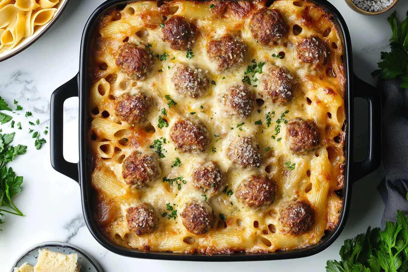 This Swedish Meatball Pasta Bake combines tender meatballs, rich creamy sauce, and perfectly baked pasta, all melting together in a bubbly, golden crust. The savory flavors and comforting textures make every bite irresistible and utterly satisfying.