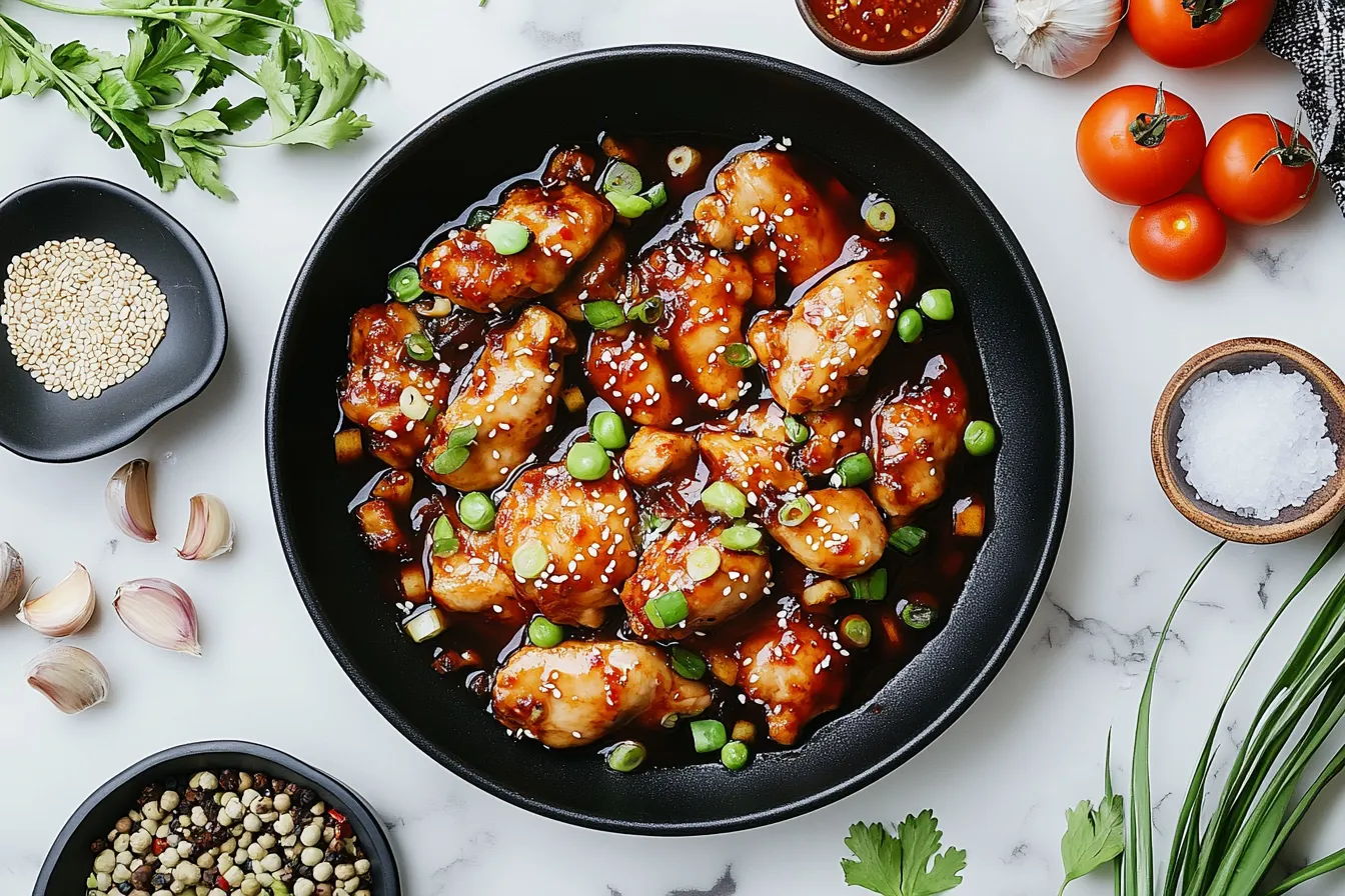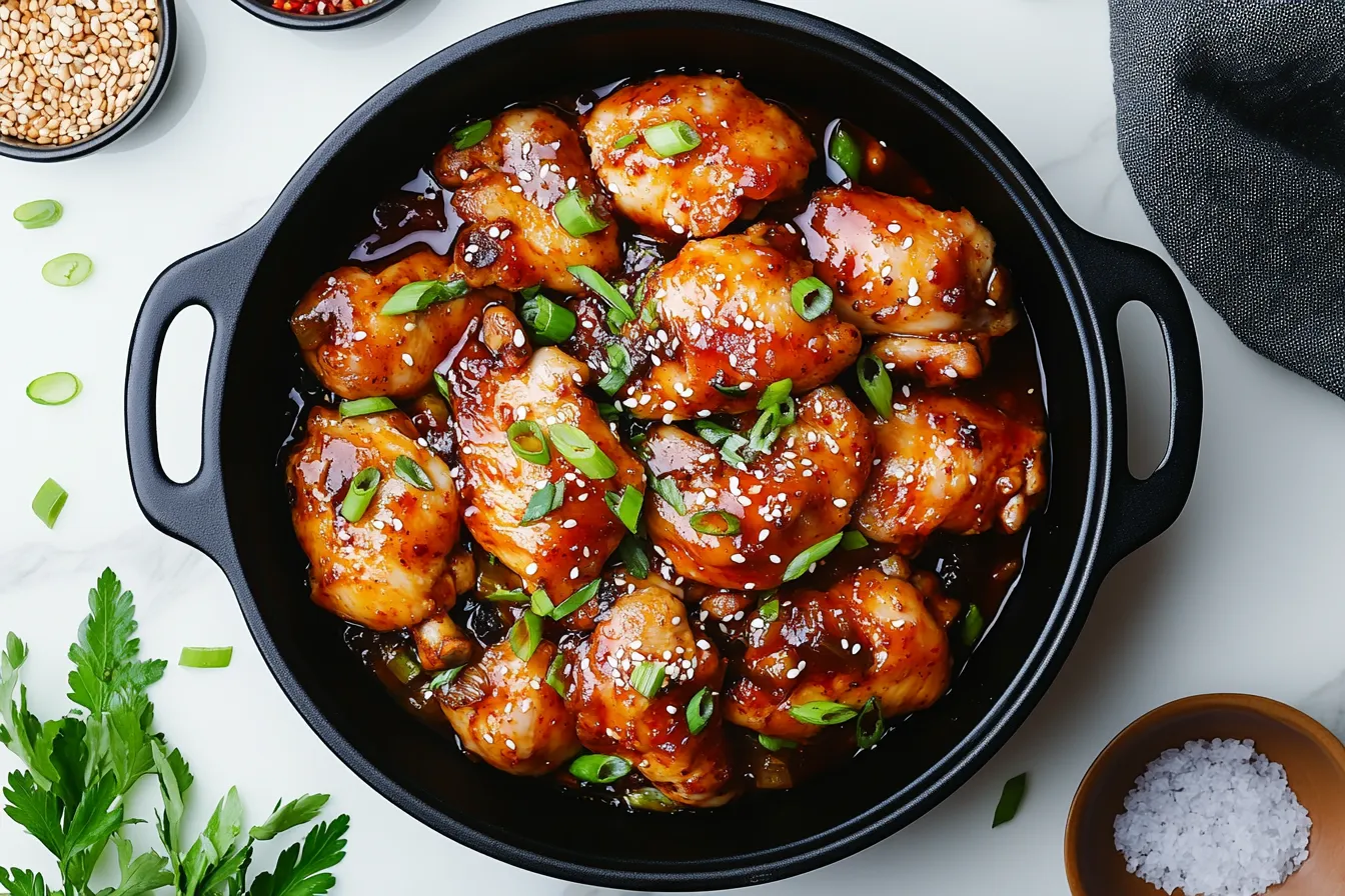 Scallions: Chopped scallions provide a fresh, crisp bite that contrasts the rich, savory chicken and sauce. Their mild onion flavor adds just the right amount of sharpness, while their vibrant green color makes the dish visually appealing.