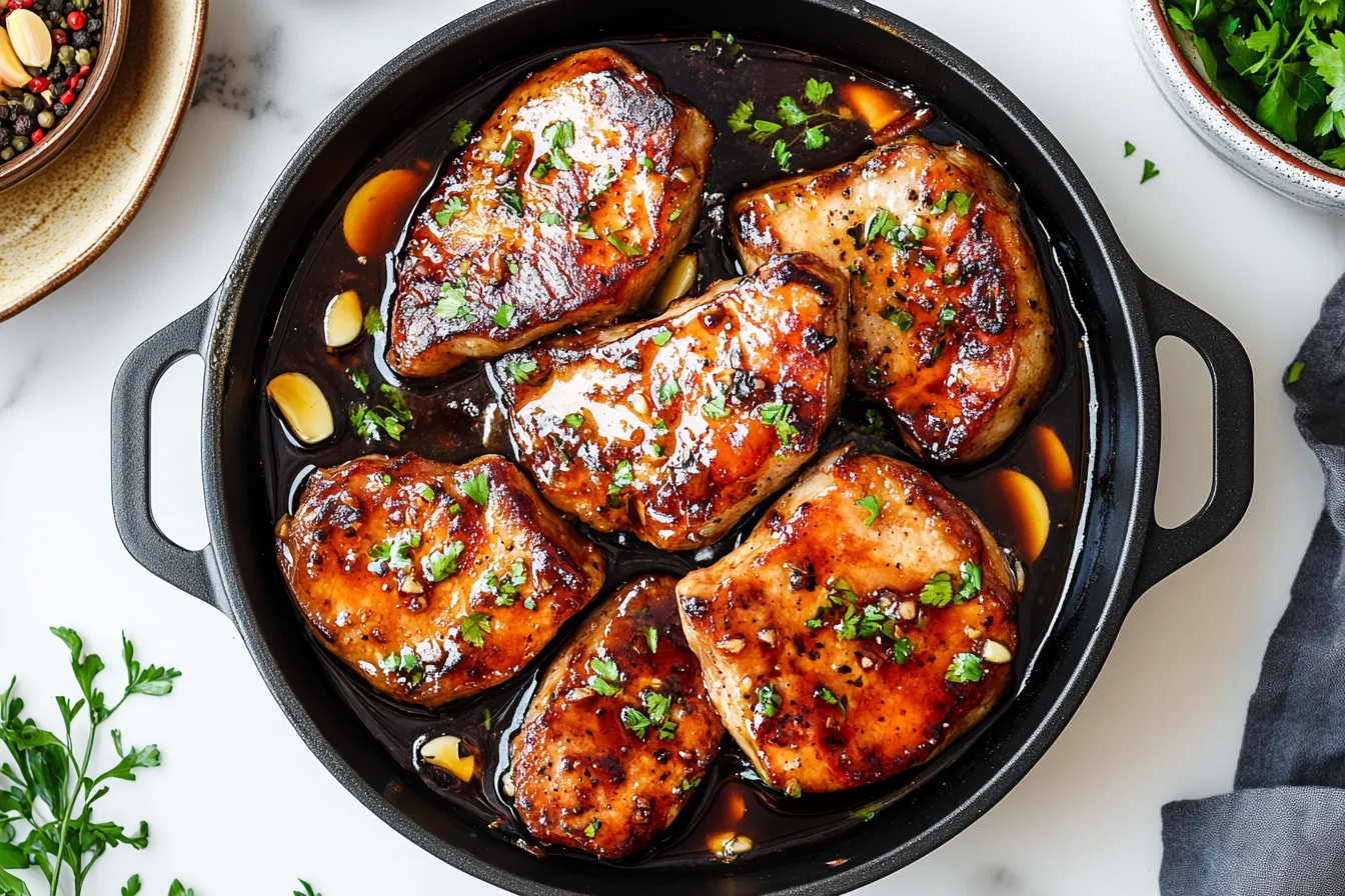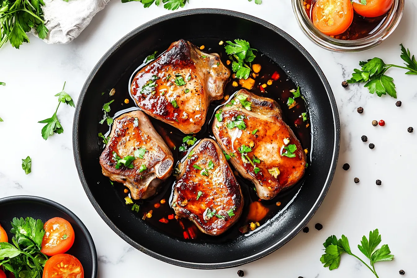 Once the glaze has thickened to a sticky consistency, remove the skillet from the heat. Sprinkle freshly chopped parsley over the pork chops for a burst of color and freshness. Serve immediately, and get ready to enjoy a dish that’s sweet, savory, and totally irresistible.