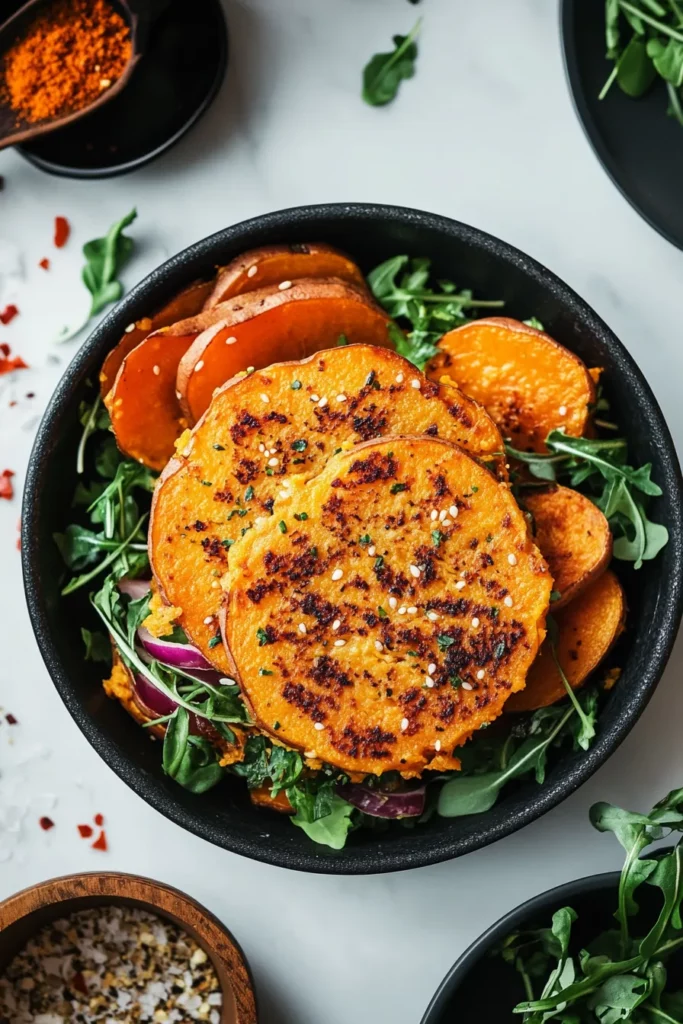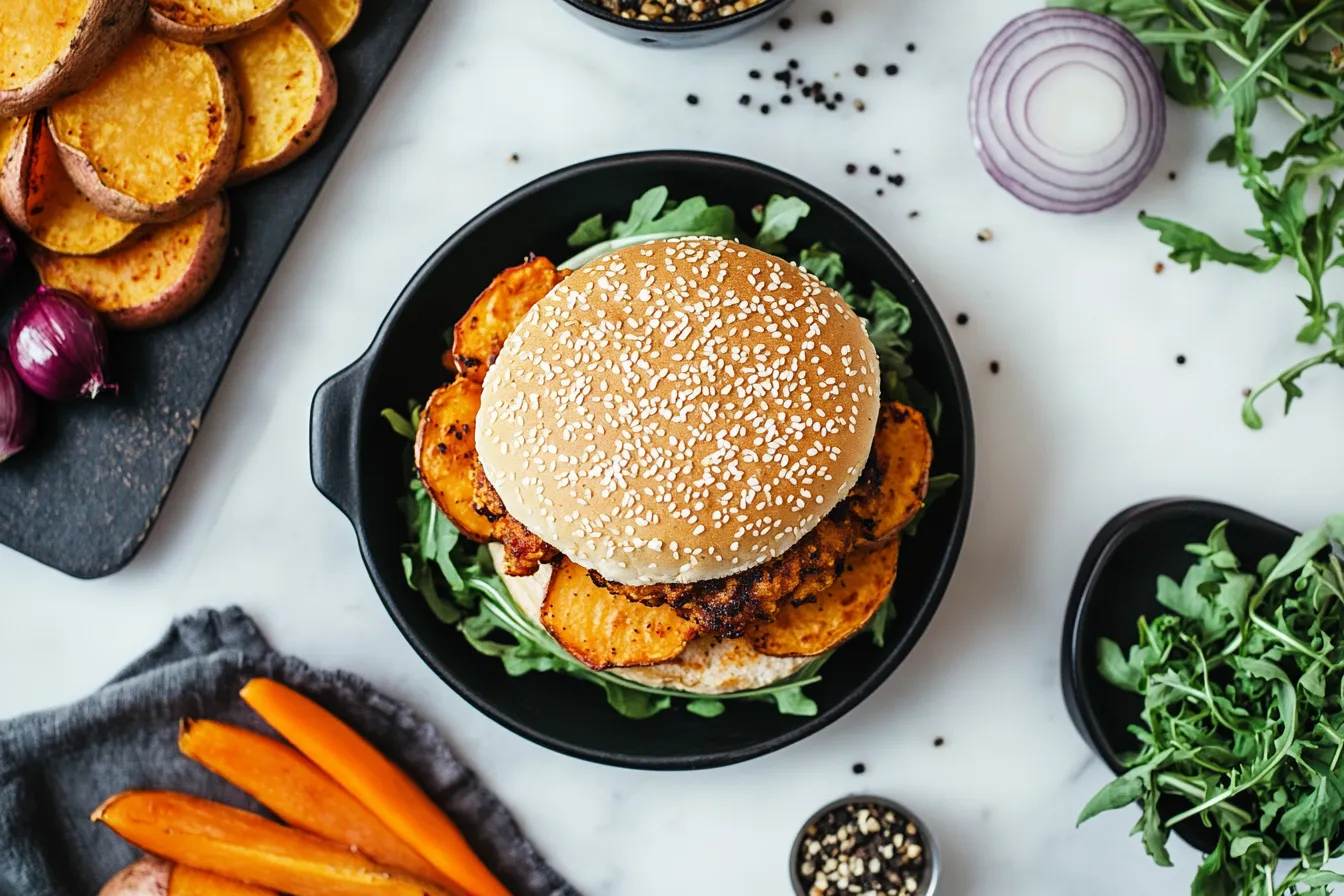 For all you sweet potato lovers out there, why not double up the sweet potato goodness? Serve your burger alongside crispy sweet potato fries, seasoned with a touch of smoked paprika and sea salt. It’s comfort food at its best—slightly sweet, salty, and utterly satisfying!