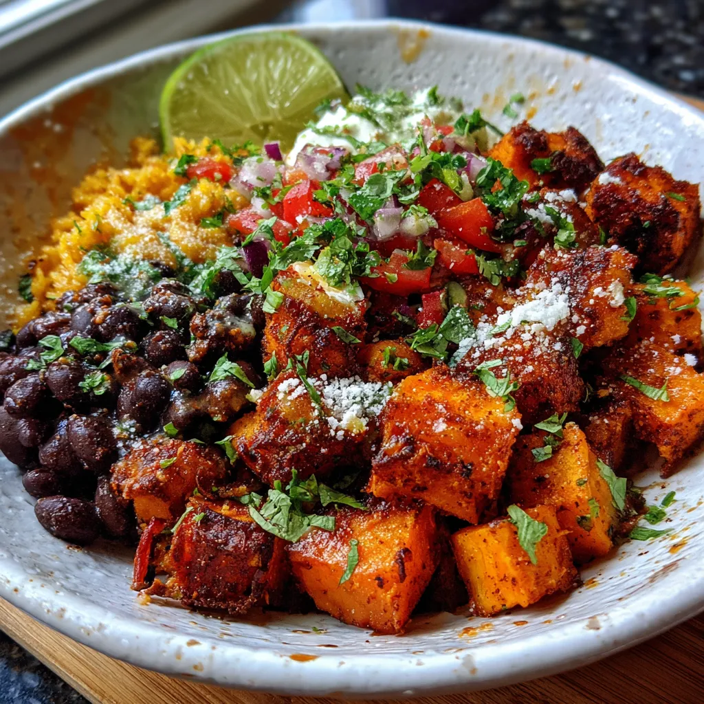 Let’s break down the steps to build this bowl from scratch. You’ll roast tender sweet potatoes, cook fluffy cilantro-lime rice, simmer spiced black beans, whip up a vibrant corn–pepper mix, blend a creamy taco sauce, prep crisp fresh toppings, and finally assemble everything into a showstopper bowl. Follow along and you’ll have dinner on the table in about an hour.
