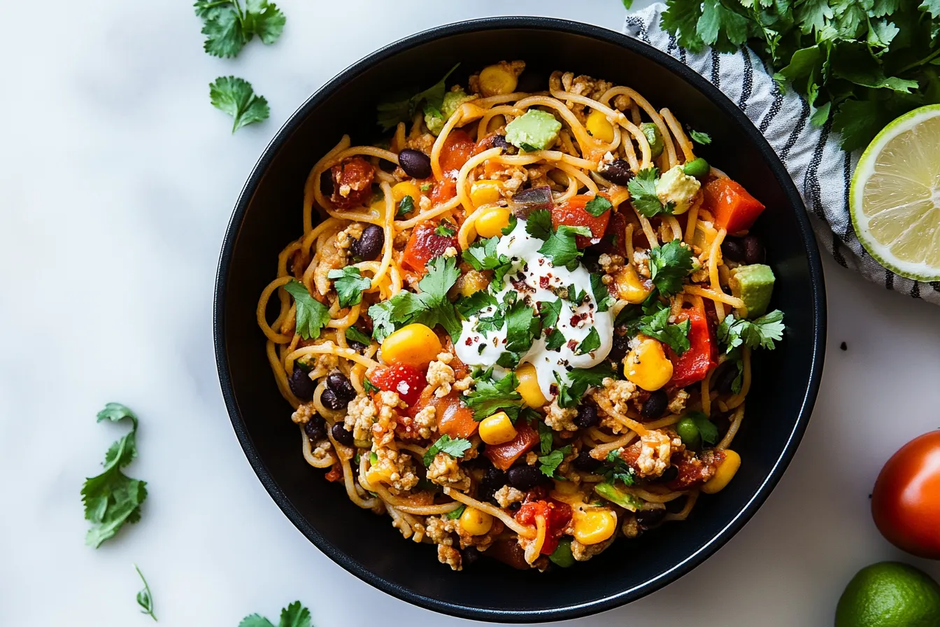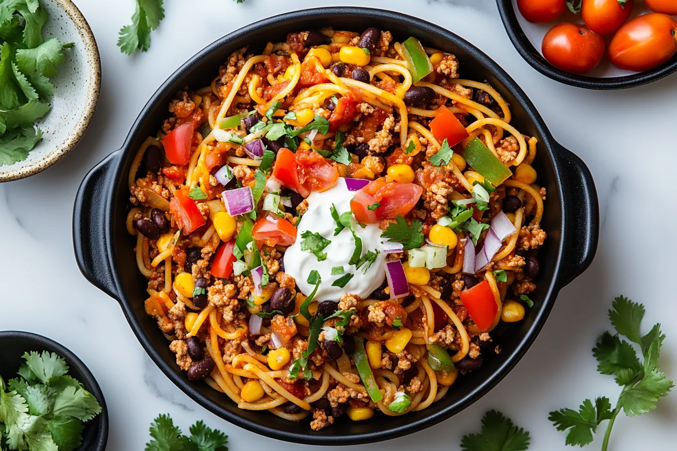 Taco spaghetti is a fun, flavorful twist on classic comfort food, bringing together all the savory goodness of tacos with the heartiness of spaghetti. With every bite, you get that perfect balance of smoky, spicy, cheesy, and tangy flavors that make this dish so irresistible. Whether you’re feeding a crowd or treating yourself to a cozy dinner, taco spaghetti always hits the spot. Plus, it’s so easy to customize—add extra veggies, adjust the heat to your liking, or top it off with your favorite garnishes to make it your own.