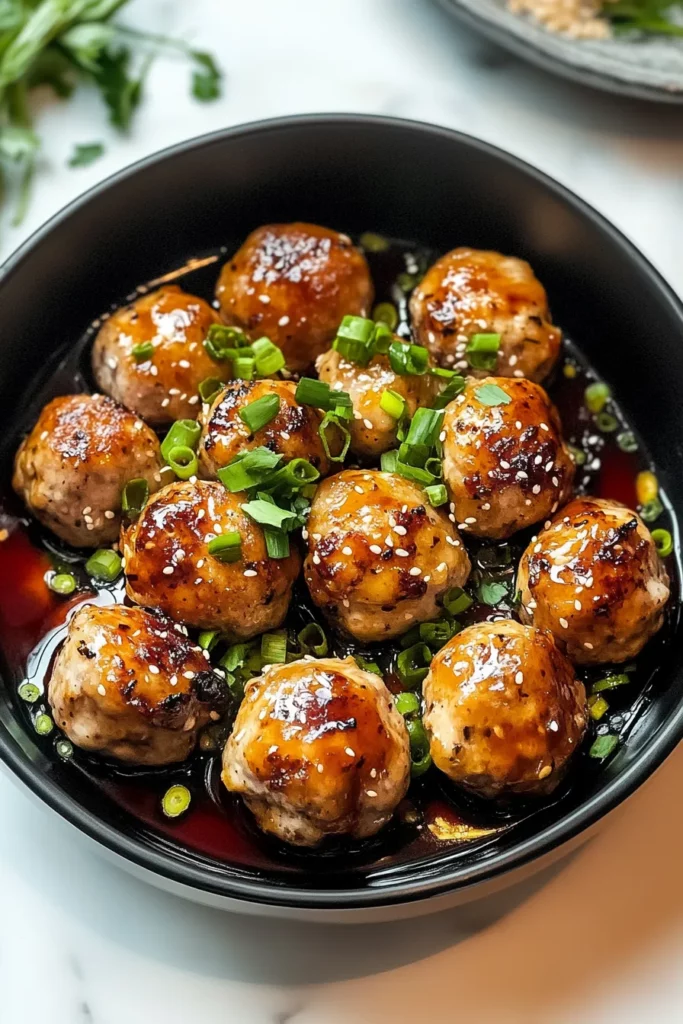 Tender, juicy chicken meatballs glazed in a sweet and savory teriyaki sauce, with a perfect balance of flavors. Each bite is a burst of umami goodness, complemented by a hint of ginger and garlic, making these meatballs irresistibly tasty!